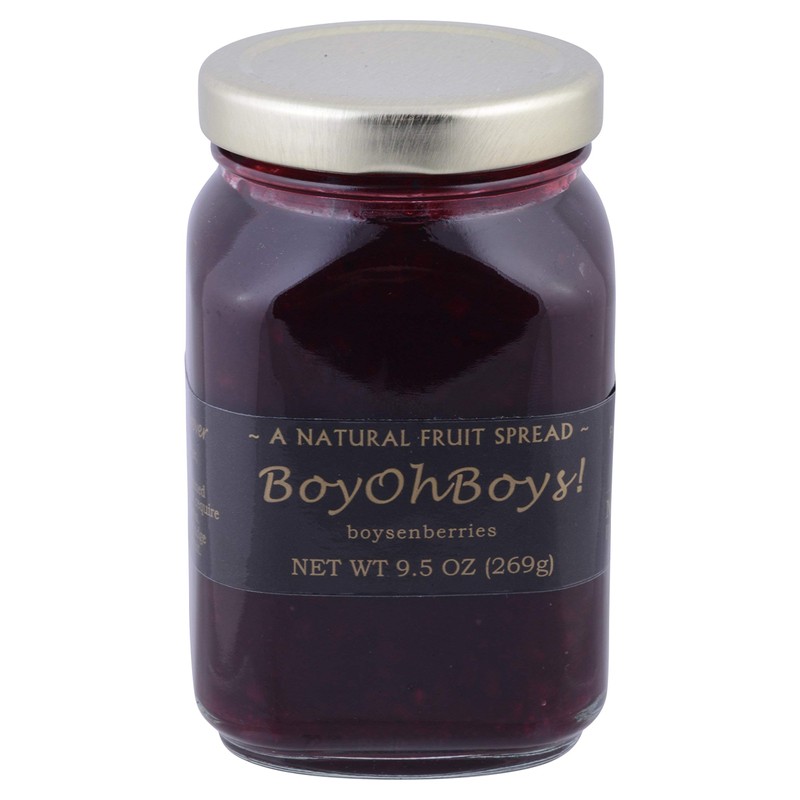 Mountain Fruit Company's newest Jam Boy oh Boys - Boysenberry Walter Knott (Knotts Berry Farm) was the first to commercially cultivate the boysenberry in southern California. The Boysenberry is a cross between blackberry, loganberry and raspberry. Boysenberry flavor is somewhat reminiscent of raspberries with a slight tart undertone. Net Wt 9.5 oz glass jar