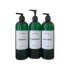 MountainLeaf 16 oz PET Plastic Slim (Cosmo) Round Pump Bottles with Printed Waterproof Labels of Shampoo, Conditioner and Body Wash - Set of 3 (Green Bottle with Black Pump)