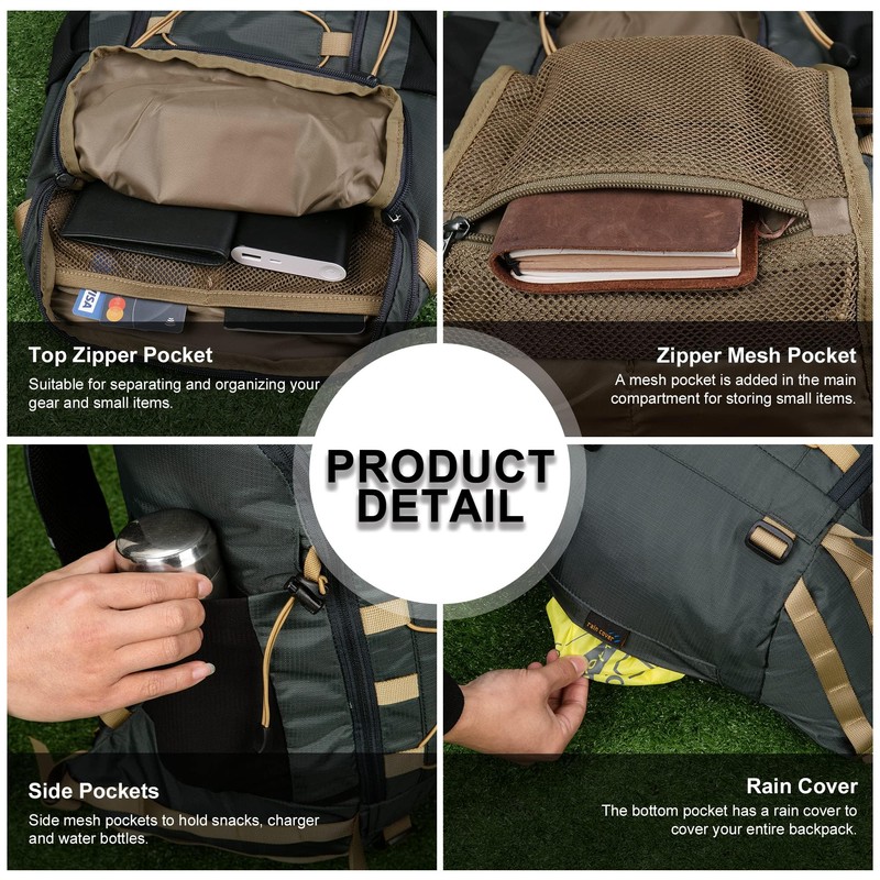 - đăDurable MaterialăThis 35L outdoor hiking backpack is perfect for weekend vacations or three-day excursions. It is made of water-resistant polyester fabric, which provides strength and long-lasting performance, lightweight for only about 0.795kg (1.75lbs).