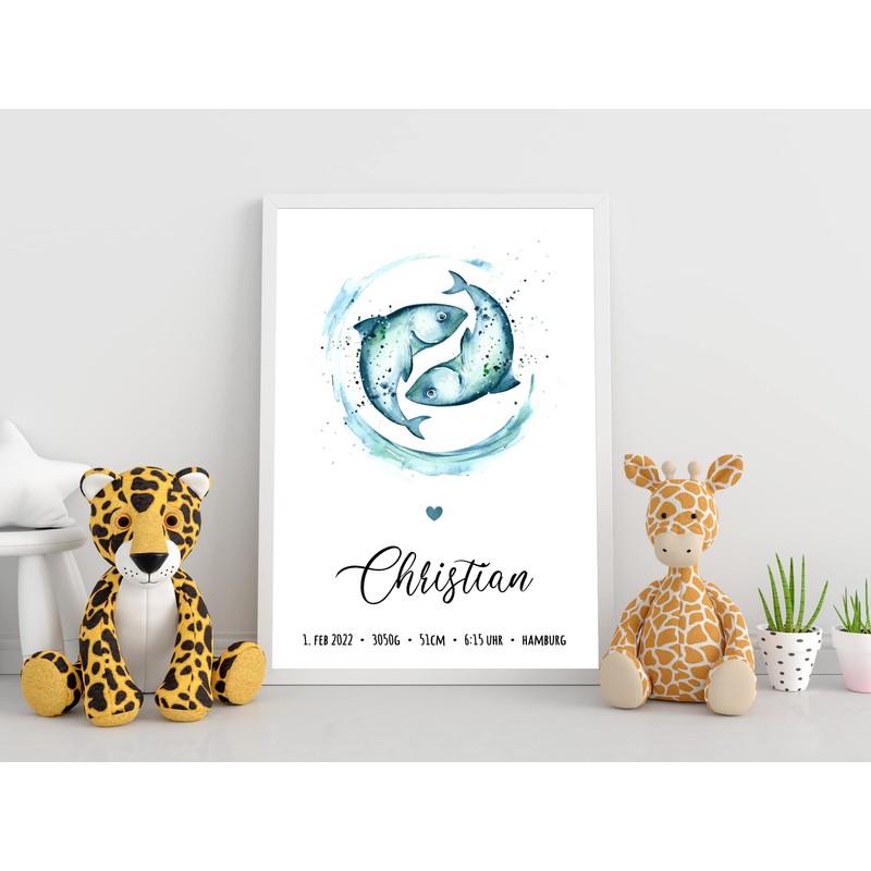 Mountiki® Sternzeichen Bild Geburt personalisiert mit Namen & Datum | Kinderzimmer Geburtsbild mit Geburtsdaten personalisierbar | Geschenk zur Geburt