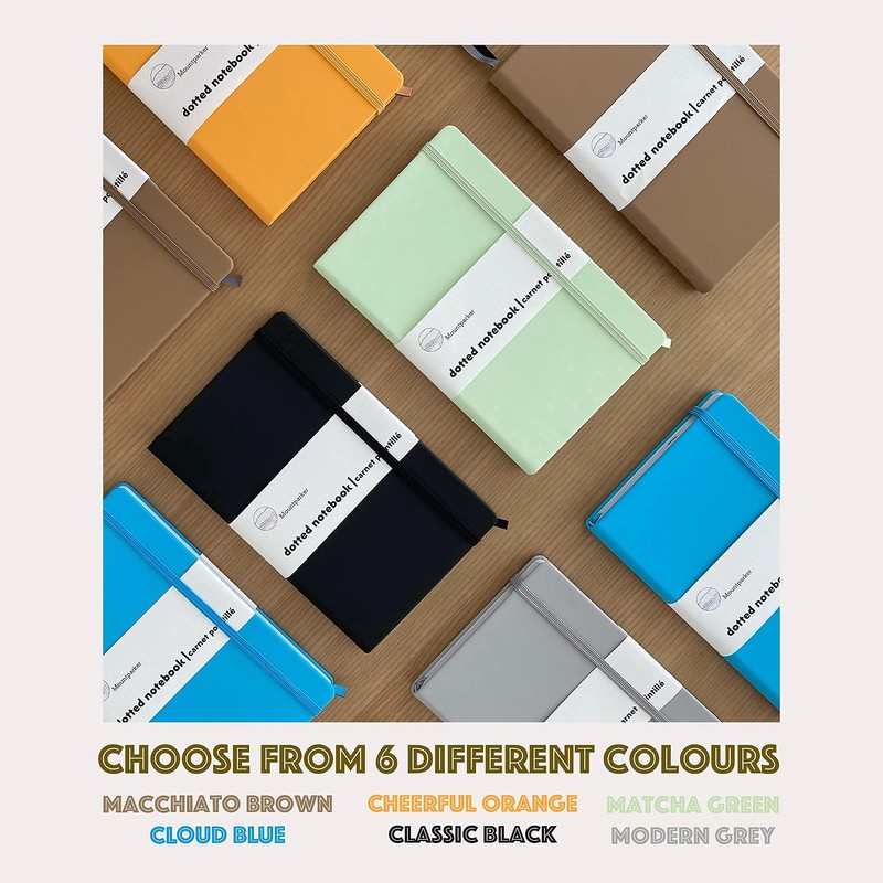 Mountparker Dotted Journal Bullet Notebook with Colour Dot Stickers - Soft Touch Hardcover, 100gsm Pure White Paper, 160 Pages, 5.3 x 8.4 Inches Planner (Modern Grey)