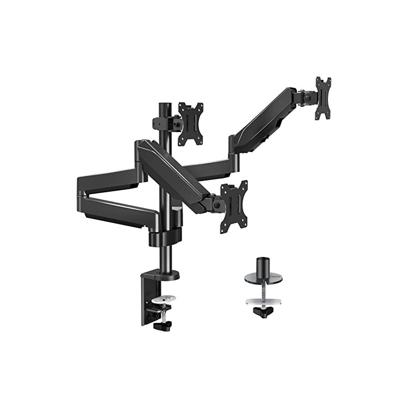 MOUNTUP Triple Monitor Stand Mount - 3 Monitor Desk Mount for Computer Screens Up to 27 inch, Triple Monitor Arm with Gas Spring, Heavy Duty Monitor Stand, Each Arm Holds Up to 17.6 lbs, MU0006