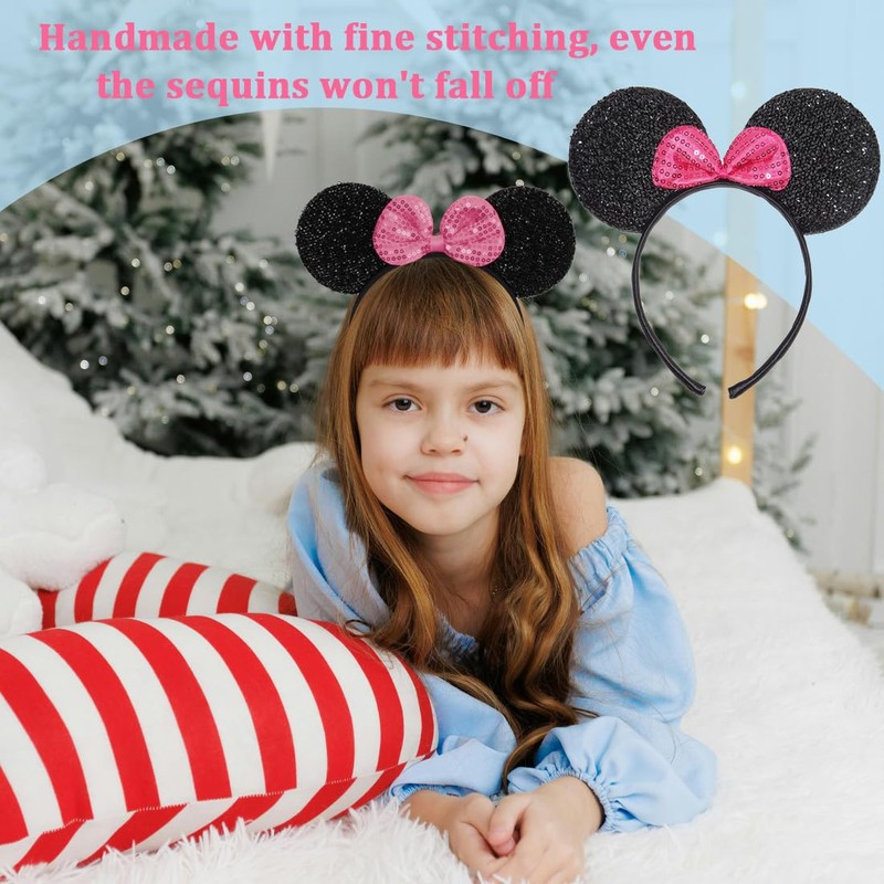 - DURABLE & STURDY Our mouse ear headbands are made with reinforced stitching and high quality materials. The mouse ears and bow are sewn on the headband with a strong thread to ensure a secure hold, and the glitter is evenly distributed and not easy to peel off. The careful workmanship effectively prevents wear and fading and guarantees the longevity of our mouse ear headbands.