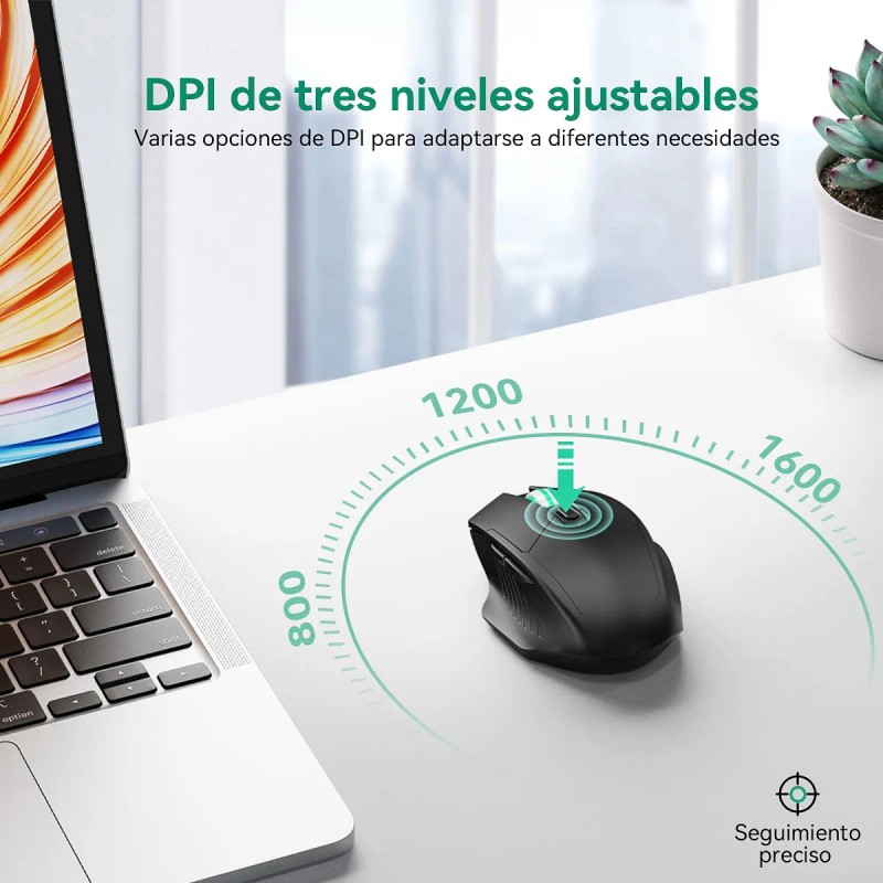 Ofrece 3 niveles de precisión: 800 / 1200 / 1600 DPI, adecuados para tareas de oficina, navegación web y juegos ligeros. Cambio rápido y sencillo según tus necesidades.