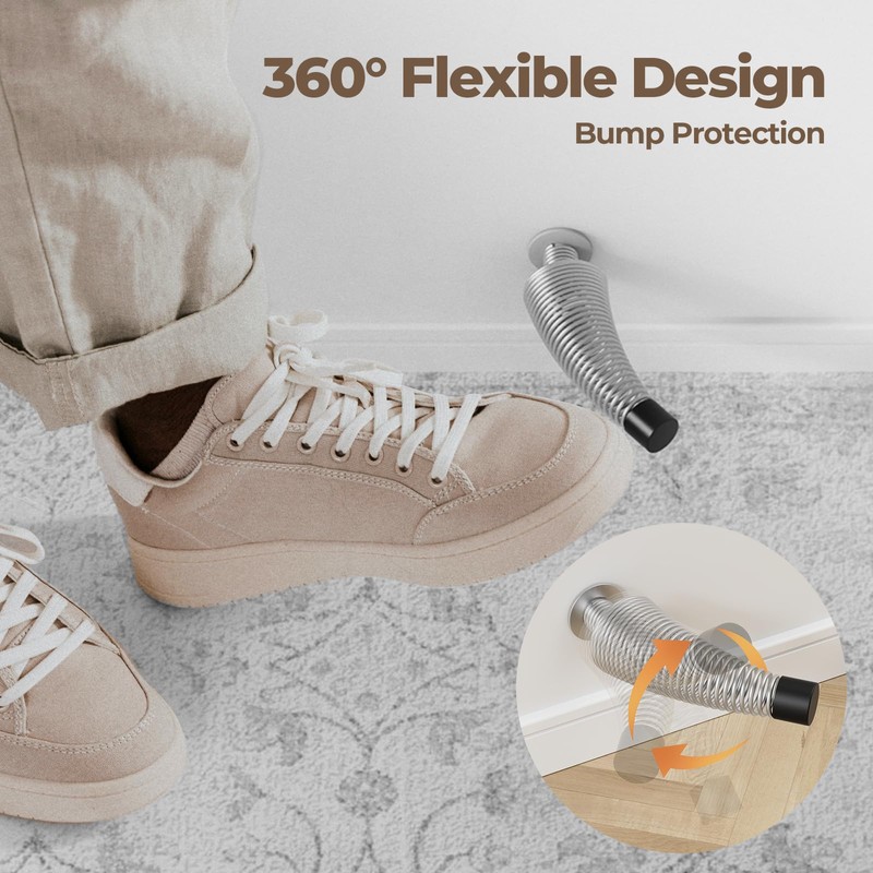 - 【Anti Injury Design】The Mousike spring door stopper is different from others. It can bend freely at 360 degrees and can restore very well. In daily use, there is no need to worry about leg injuries that may be caused by collisions, nor about damage to the walls. It ensures the safety of family members.
