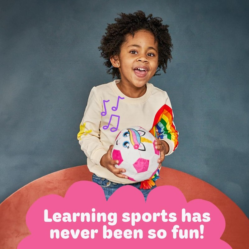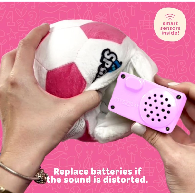 Move2play’s interactive sports balls are designed as your child's first introduction to sports. Each sports ball has 2+ unique songs and 40+ phrases and sound effects. These sports game balls can be used indoor and outdoor making them a great gift for birthday parties year round. Extensive product testing was done with boys and girls of all ages - toddlers, preschoolers, 1, 2, 3 year olds, 4 year olds, 5 year olds, and 6 year olds. The talking toys come with batteries and have volume control. The soft plush is machine- washable if you removed The sound box first.