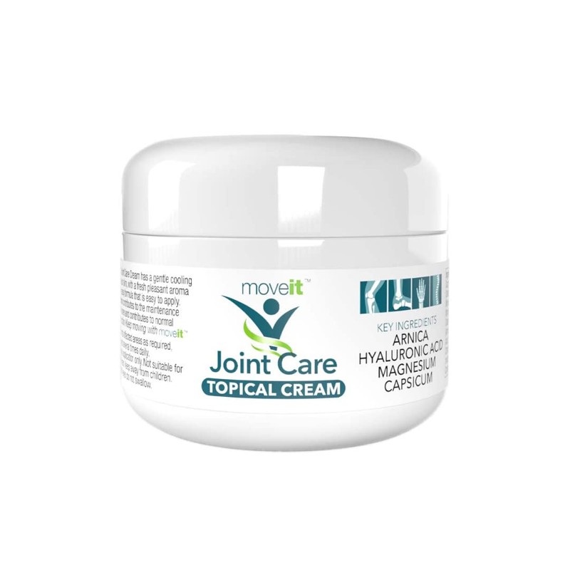 Moveit Joint Care Cream is a topical cream formulated to provide relief for joint and muscle discomfort, support injury recovery, and aid in remedial work. The cream combines high-grade Arnica, Hyaluronic Acid, Magnesium, and Capsicum to offer a gentle and effective solution for joint and muscle discomfort. Arnica is well-known for its properties and is commonly used for soothing purposes related to joint and muscle discomfort. Hyaluronic Acid helps to moisturize joints, while Magnesium contributes to the maintenance of normal bones and muscle function. Moveit Joint Care Cream is easy to apply and is available in a 100ml pot. Its non-greasy formula has a pleasant fresh aroma. Simply apply the cream to the affected areas as needed. It can be used multiple times a day, but please keep it out of reach of small children. Whether you're looking to find relief for joint and muscle discomfort, support injury recovery, or seek a natural solution, Moveit Joint Care Cream can be a suitable choice. Give it a try and experience its benefits!