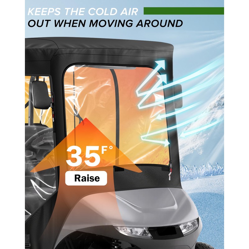 - MULTIPLE PROTECTION, THE SAVIOR IN COLD WEATHER - Our golf cart winter enclosure not only withstands rain, snow, and sleet but also effectively prevents cold winds from entering the cart. You can stay warm and dry in harsh weather conditions. Allowing you to enjoy golf rides in any weather.