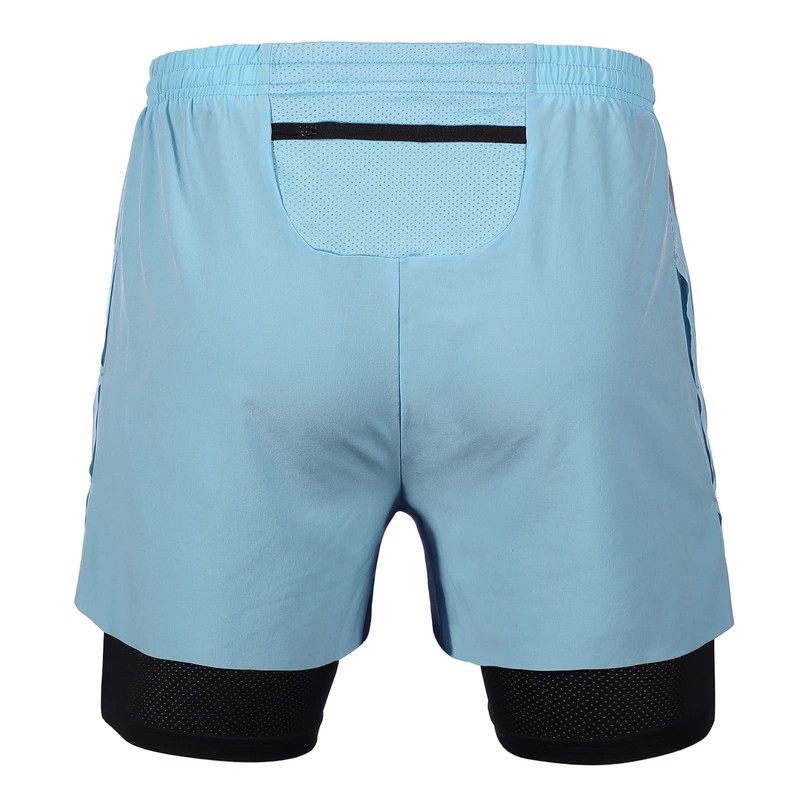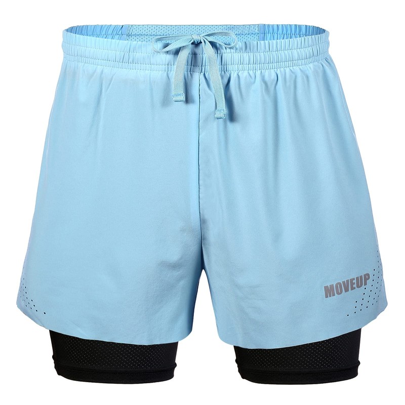 MOVEUP Men's 2 in 1 Shorts, Quick-Drying Running Shorts with Pockets, Sports Shorts, Fitness Running Trousers, Jogging Bottoms for Exercise, lightblue