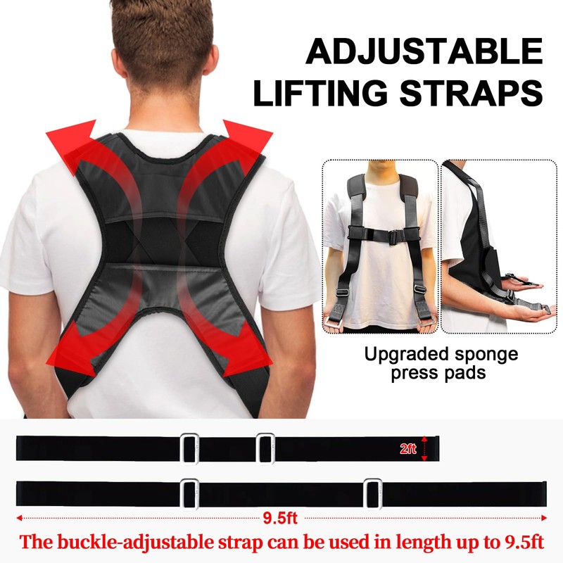 - ADJUSTABLE LENGTH : Adjust the shoulder straps to your height with adjustable lengths up to 9.5 feet. Enjoy a customized fit that enhances comfort during moving, allowing you and your partner to lift and maneuver bulky items with ease.