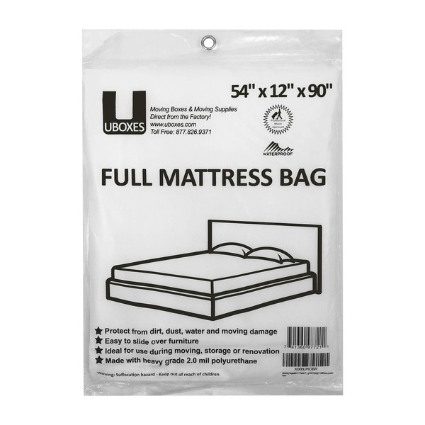 UBOXES Moving Supplies Full Size Mattress Bag 54" x 12" x 90" (FULLSCOVER01),Clear