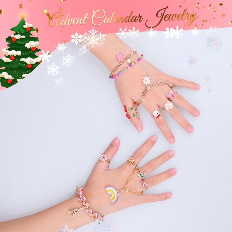 - 【Joyful Countdown】24 Surprises to get your little princess through the ritual of discovering a new piece of jewellery every day, jewellery that's irresistibly cute as well as elegantly sophisticated, not only so your little girl can express her style in different ways, but also to make the Christmas holidays even more special and sweet, adding to the anticipation of Christmas.
