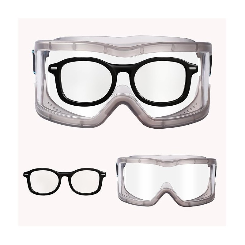 - 【SAFETY GOGGLES OVER GLASSES】Oversized frame, you can wear a variety of larger size myopia glasses in the goggles, safety glasses. Size: 6.3*3.15 inch