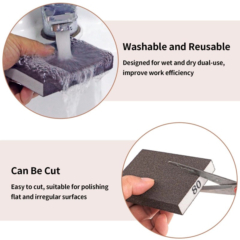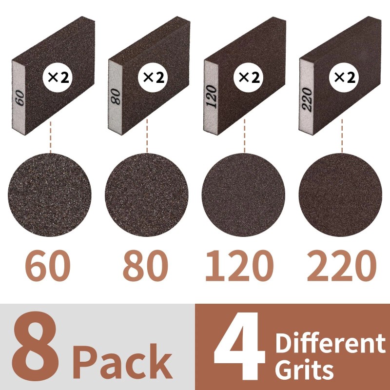 4 Different Grits: Includes 8 sanding blocks in 4 grits—60/80/120/220 (coarse, medium, fine, and superfine), 2 blocks per grit; our sanding sponge is reusable, washable, and suitable for all your sanding needs