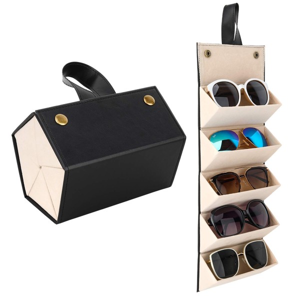 - ★【Space saver】 Folding design, you can store multiple pairs glasses or sunglasses at the same time, open is easy.Hanging design, the sunglasses organizer can hang in the wardrobe, behind the door or on the shelf to save space.