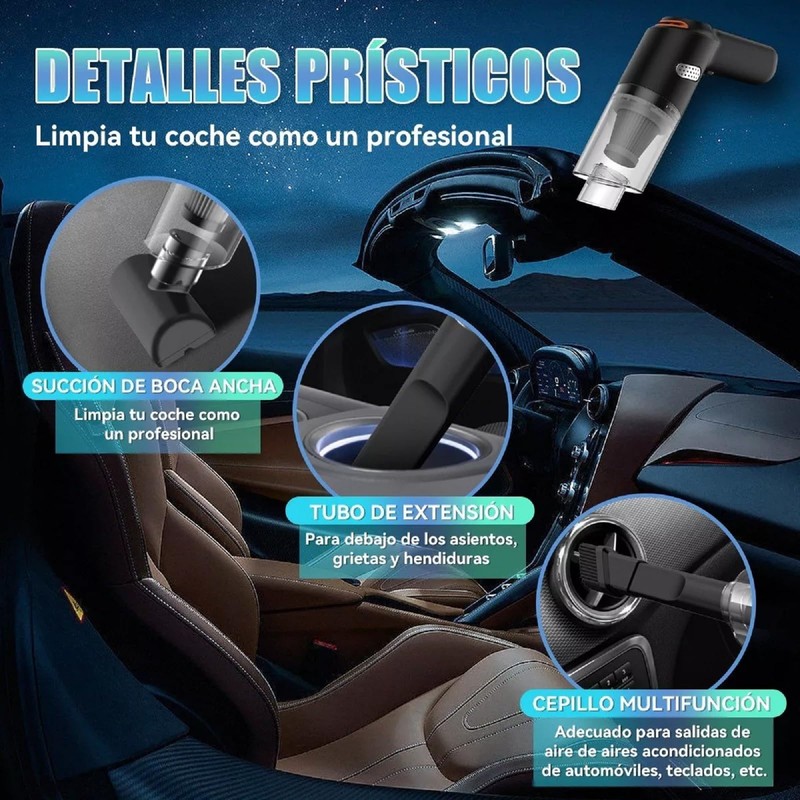 - Aspiradora Portátil Sin Cable: Esta aspiradora inalámbrica portátil le permite moverse libremente entre habitaciones sin la molestia de los cables. Es un mango liviano y de diseño ergonómico con un cuerpo de fondo plano que se desliza fácilmente mientras limpia pisos y esquinas de asientos. Ideal para hogar, jardín, mascotas, cocina