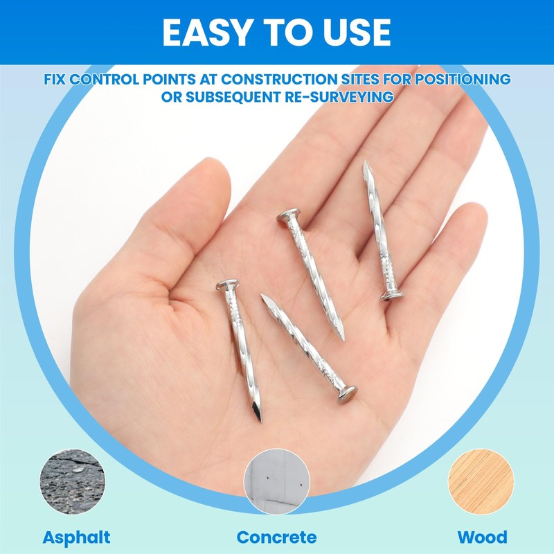 - Measurement Accuracy: thanks to their larger center point design, magnails allow for easier detection and alignment with locator instruments; This feature ensures accurate measurements and significantly boosts on site work efficiency