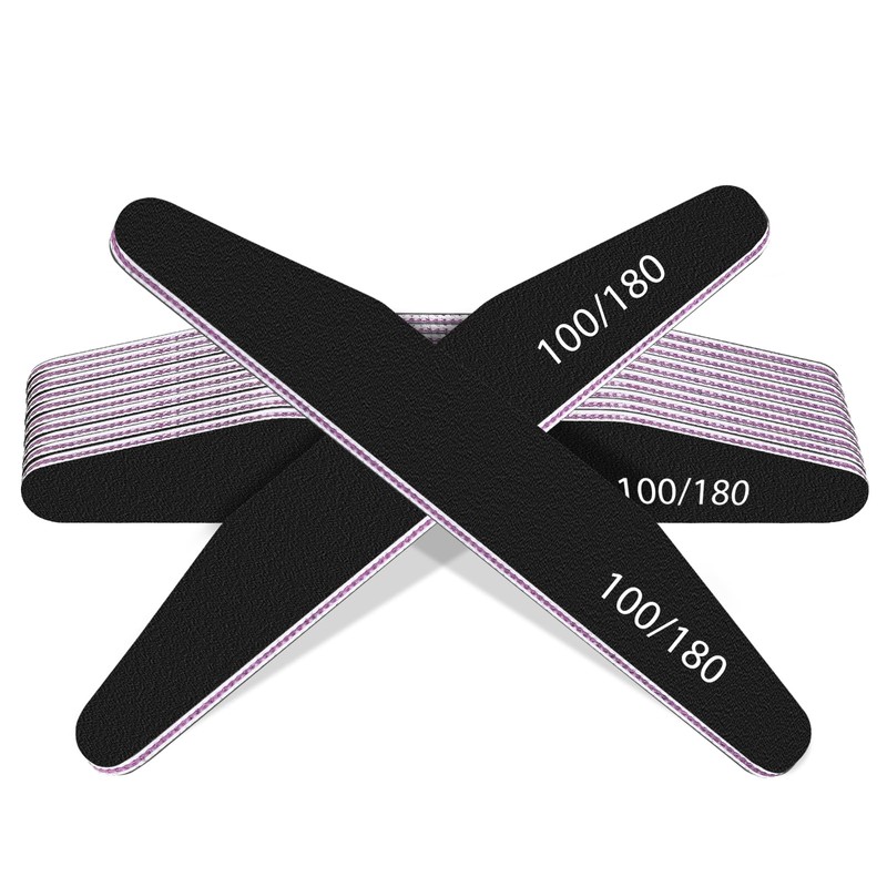 MOXYOY 10PCS Nail Files, 100/180 Grit Double-Sided Emery Boards, Washable Professional Nail File Tools for Home & Salon Use (Black)
