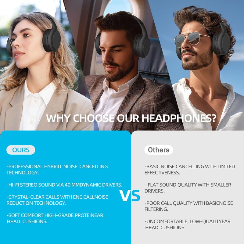 - 【Hybrid noise cancellation】: This noise cancelling headphones combines the advantages of active and passive noise cancellation, wireless headphones through a circuit to transform the surrounding ambient sound into an inverted sound signal added to the speaker terminal, or through physical structures to isolate external noise.