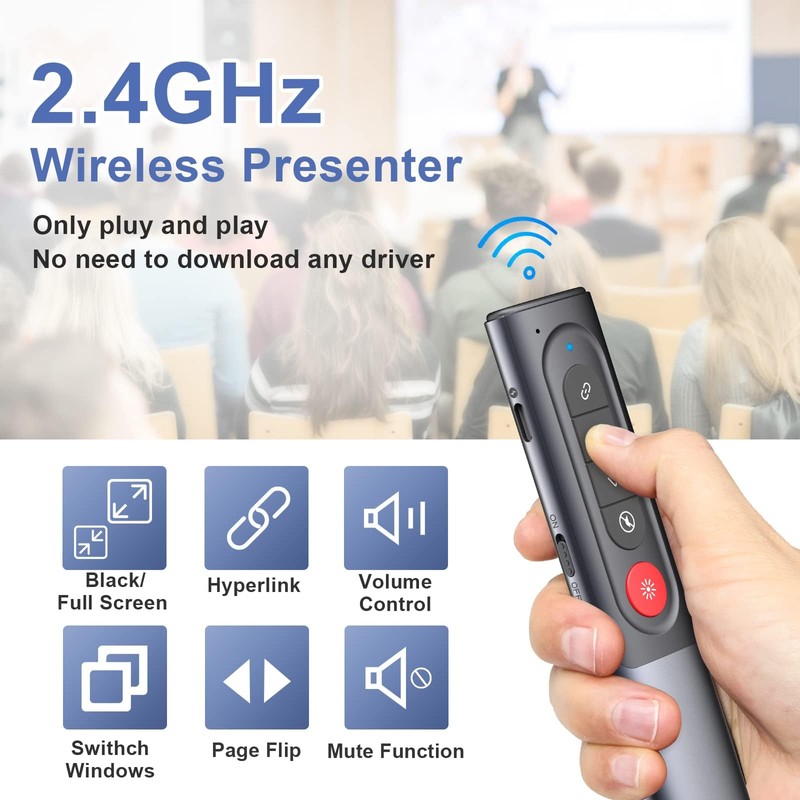 • 【Widely Compatible】The presentation clickers compatible with Windows/Mac/Unix/Android operating systems, and supports software: PowerPoint, Google Slides, iWork (Keynote & Numbers & Pages), Prezi, PDF, MS Word, Excel , ACD See, Website, etc. This wireless powerpoint clicker can be use with any PC, laptop, or all-in-one computer equipped, which makes your presentations more convenient.