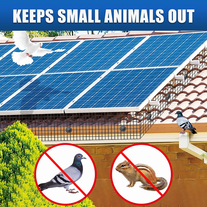 • Medium Mesh: Our mesh size is 1/2" x 1/2". Solar panel mesh acts as an animal barrier that most birds can't cross to nest under the solar panels, protecting roofs, wires and fixtures from vandalism