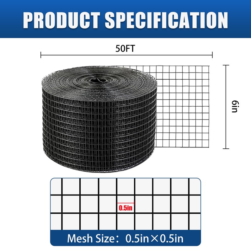 Moyios 6in*50FT Solar Panel Bird Mesh Black PVC Coated Steel Solar Panel Bird...
