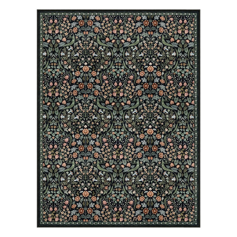 Moynesa Floral Washable Rugs 9x12, Soft Living Room Area Rugs 9x12 Large Boho Bedroom Rug, Non Slip Ultra Thin Soft Botanical Floor Carpet for Dining Room Home Office Farmhouse, Black