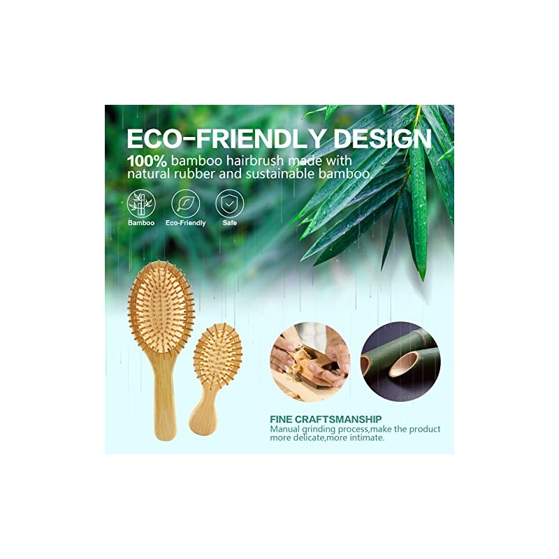 MoyRetty Bamboo Hair Brush Comb Set, Natural Wooden Hairbrush Paddle Detangling for Thick Thin Curly Straight Wavy Dry Fine Hair, Men Women and kids(4 Pcs)