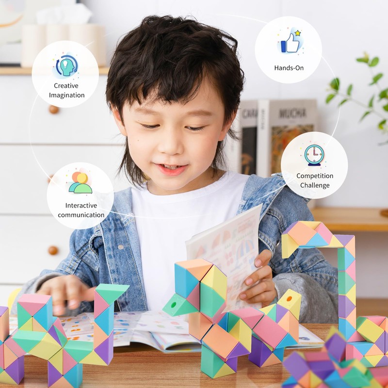 - EXERCISE LOGICAL THINKING SKILLS - The twistable design challenges users to think creatively and problem-solve as they manipulate the puzzle to form different shapes and patterns. People can create all kinds of things and they're really using their imagination.