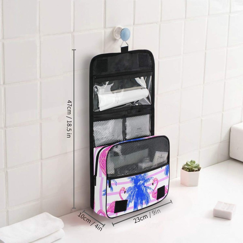 Moyyo Palm Trees Pink Flamingos Toiletry Bag Travel Wash Bag Organised Toiletry Bag Hanging Toiletry Bag Gym Camping Toiletry Bag Portable Cosmetic Organiser Bag for Women Girls Kids