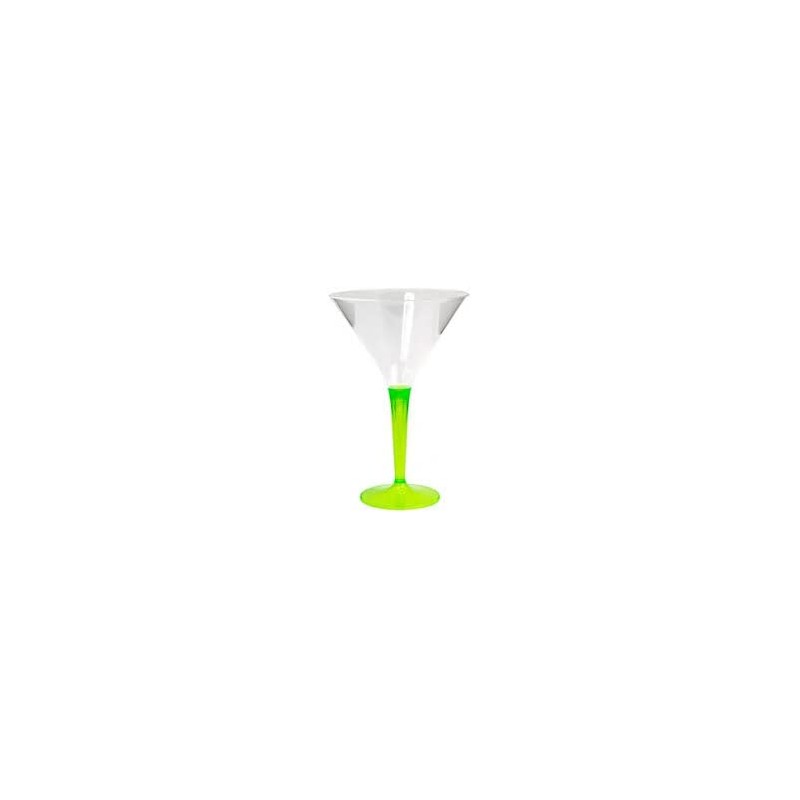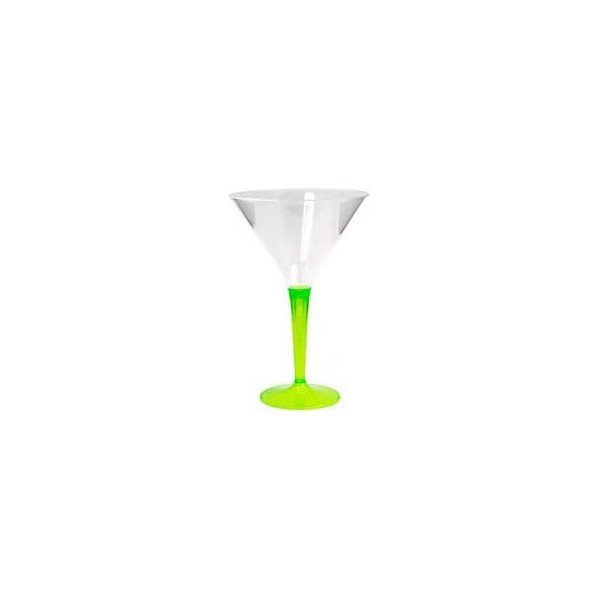- Simple and stylish lightweight clear plastic cocktail glass with a green anis stem and base, great for entertaining and dinner parties