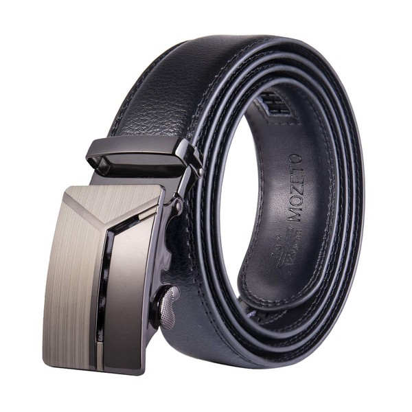MOZETO Men's Ratchet Leather Dress Belt, Adjustable Slide Belt for Men with Automatic Buckle in Gift Box