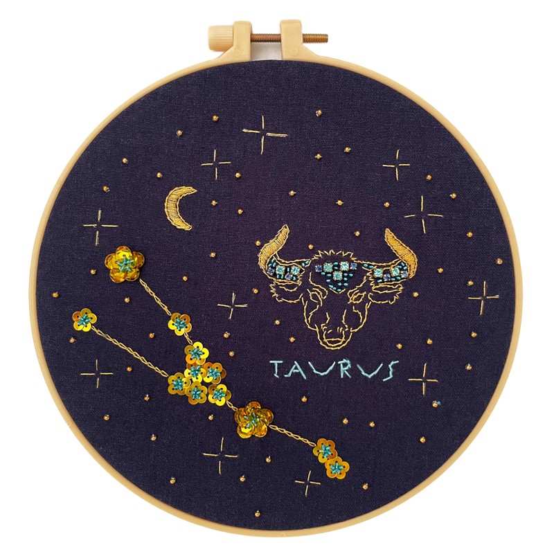 mozhijing Constellation Embroidery Kit for Adults with Stamped Pattern, Round Beads for Embroidery DIY Crafting,Cross Stitch Beginner Kits with Frame,Taurus Embroidery Kit.