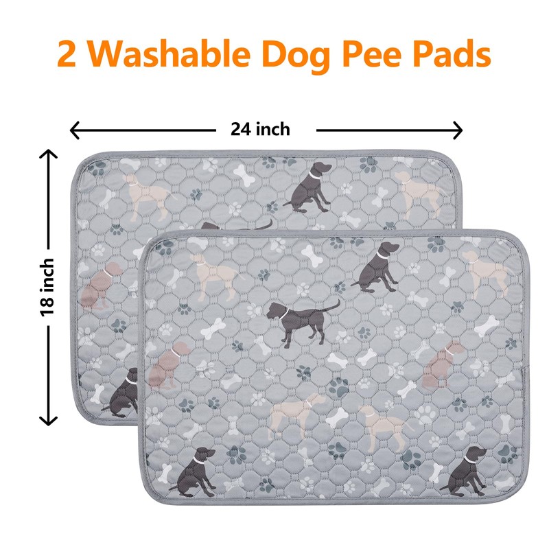 Mozin Washable Pee Pads for Dogs, 2 Pack Super Absorbent Dog Training Pads Leakproof Non-Slip Reusable Puppy Pads, Waterproof whelping Pad for Housebreak, Playpen, Crate,Potty Training, Couch- 18"x24"