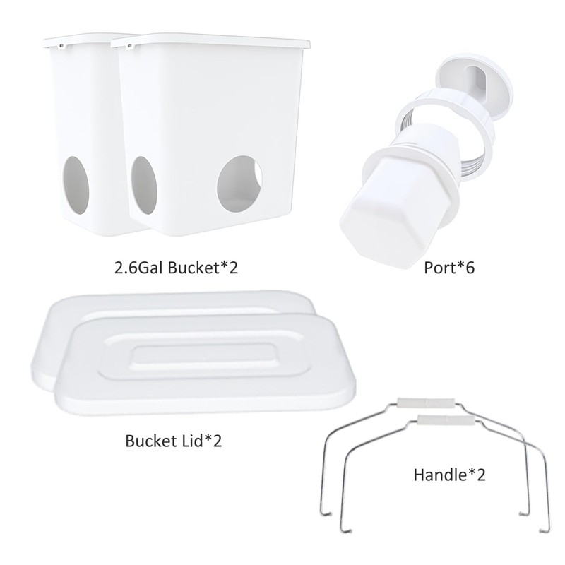 - Package with 2*20lb buckets, 6 feeder ports and hanging attachment, US Patent Product