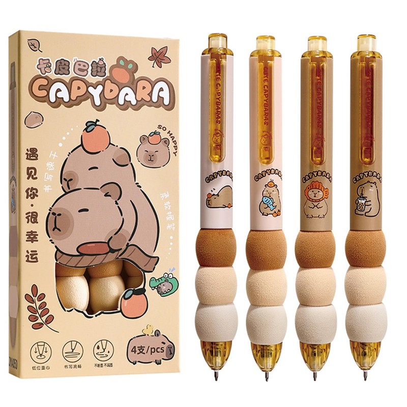 - Cute Capybara Retractable Pen: The cute gel ink pens are made of plastic material, 4 pieces pens with lovey cartoon Capybara patterns, so cute, perfect pens for women girls boys kids.