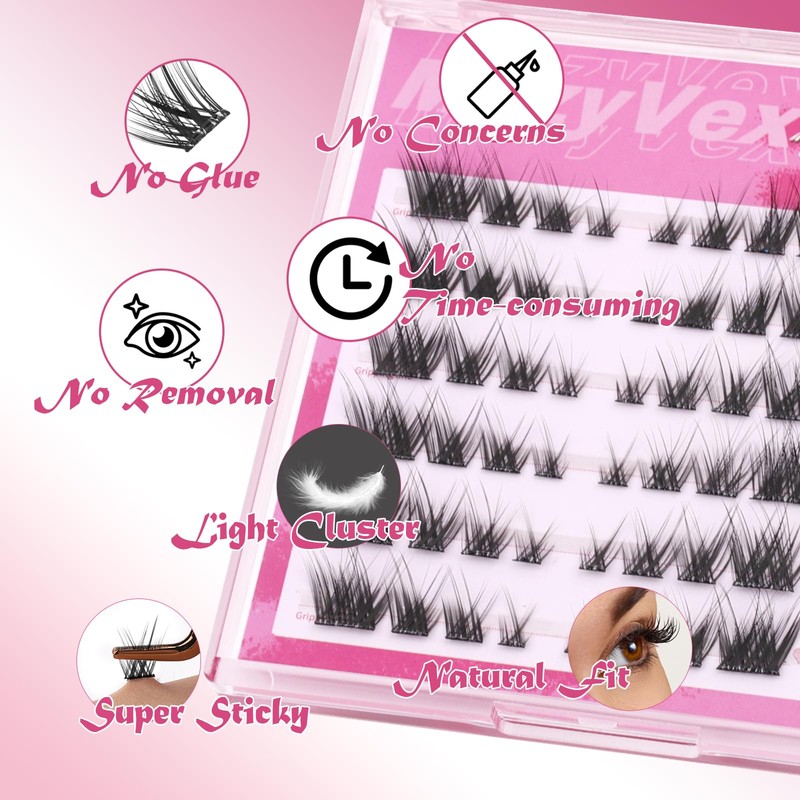 - Excellent Comfort & Flexibility: Experience the bliss of ultra-lightweight lash clusters that move naturally with your eyes. Each cluster is designed for a comfortable, secure fit, ensuring that you can wear them all day without any irritation or heaviness