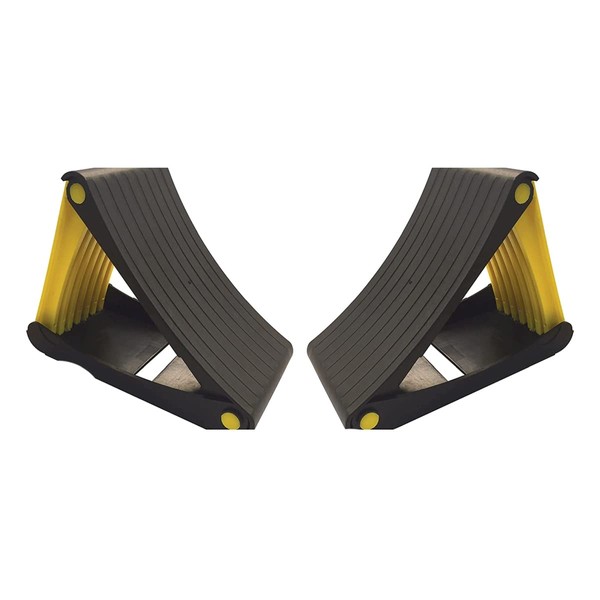 These highly visible, bright yellow wheel chocks made from heavy duty durable material.