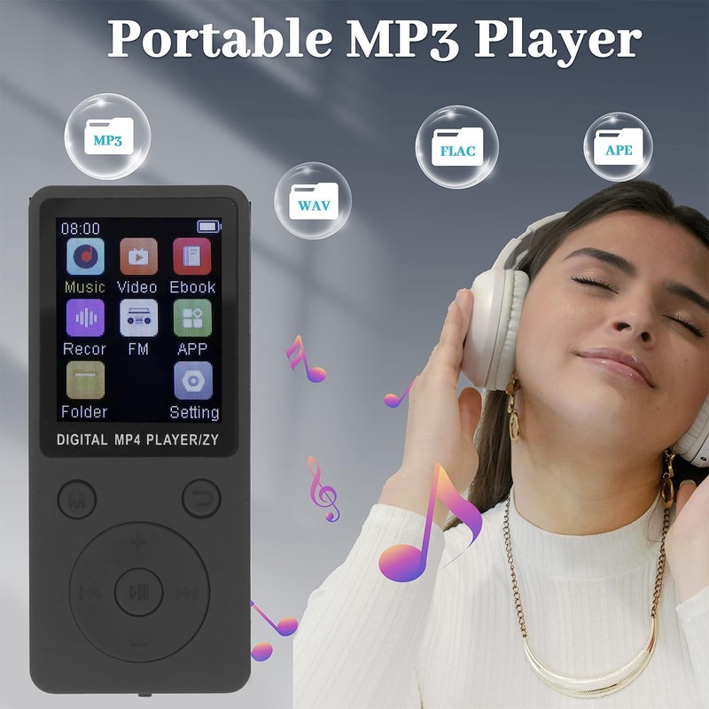 - Easy to Use: The mp3 player is easy to use with independent volume control. Can also be used as a memory card reader or file storage; Built in high speed miniature USB 2.0 cable, just drag and drop music files or folders directly when connecting to your computer, play MP3 music/voice recording/eBooks support TXT format/photo viewing/video in AMV format.