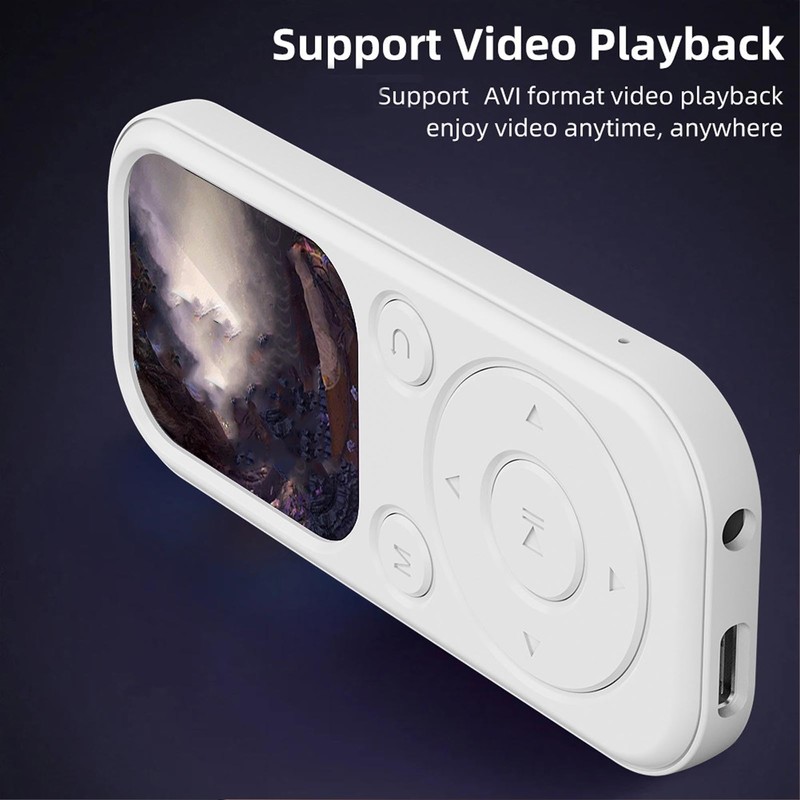 - SMALL DESIGN: 3.6in(92mm) long, 1.57in(39.8mm) wide, 0.31in(8mm) thick, 2.01in screen, 26g lightweight, portable and stylish MP3 player. Suitable for exercising, running, jogging, traveling and hiking without any burdens. The nice companion for your exercise