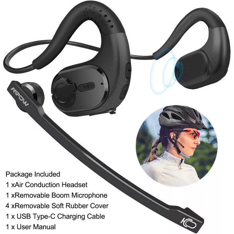 Features: 1.Open Ear Bluetooth Headphones: The open-ear design brought by air conduction technology ensures that nothing will be in or covering your ears, and keep the inside of the ear canal clean and hygienic, ensuring long-lasting comfort, day after day. The open ear Headphones allow you to stay connected to your surrounding environment and pedestrians/vehicles on the road, providing security.