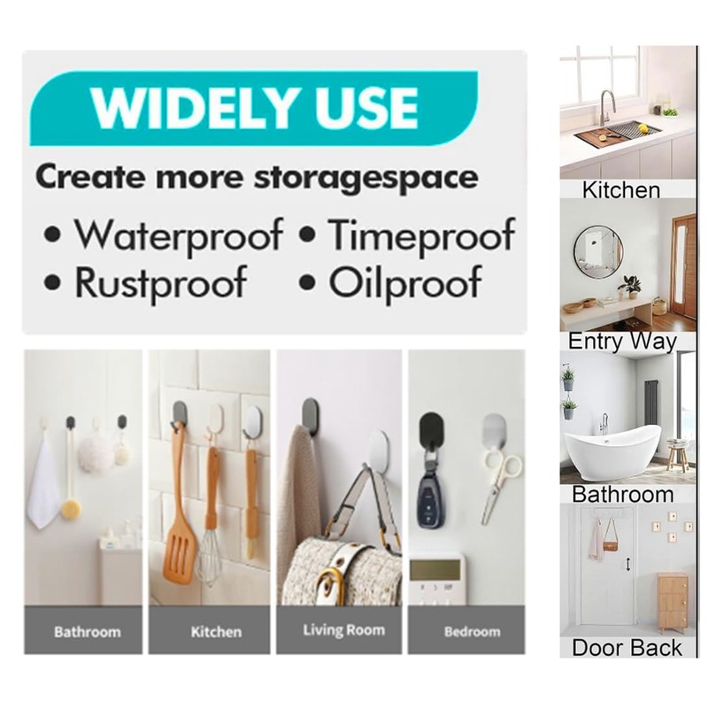 - Handy & Easy Installation: The wall hooks are very easy to stick on walls to hang things. Just Peeling the cover off the sticker and stick it in place. Make sure you clean the surface and dry it off before you apply the hooks. Take the adhesive back off and press firmly and evenly.