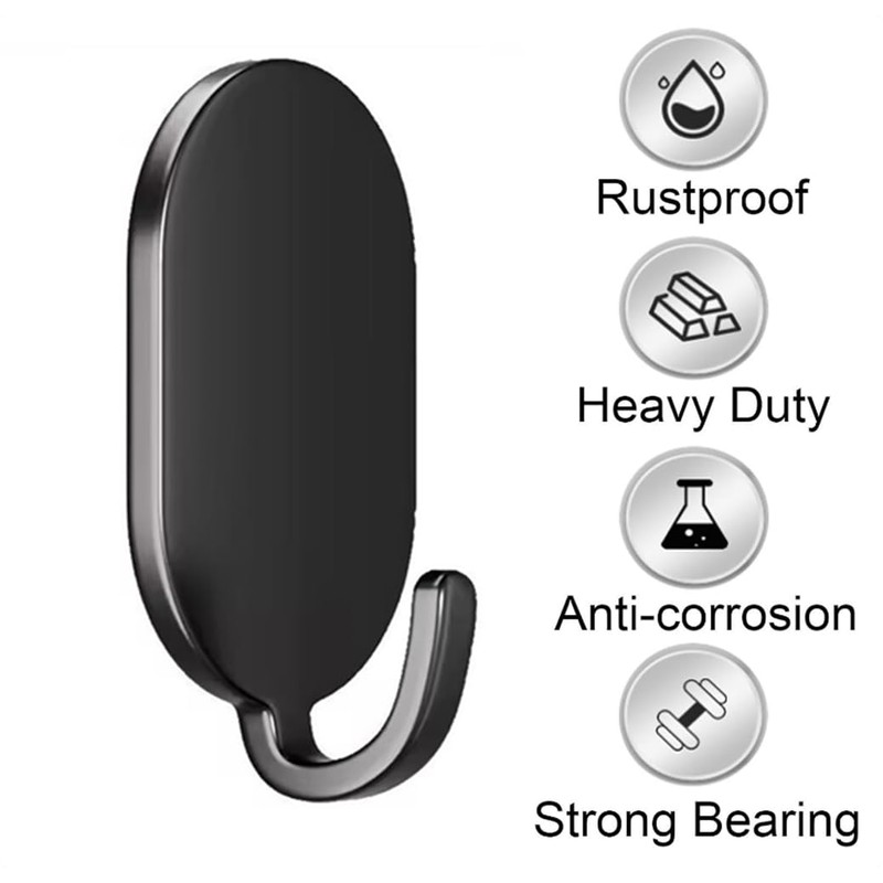 mpowtech 5 Pack Adhesive Hooks for Hanging,Self Adhesive Hanger Stainless Hook for Hanging,Wall Hooks Heavy Duty Metal Hookes Coat Hook Towel Hook Key Holder Utility Hookes,Black