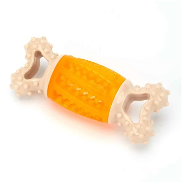 MPP 6" Giggle Bones Tough Dental Dog Toy Durable Unique Shape Texture Massages Gums (Orange)