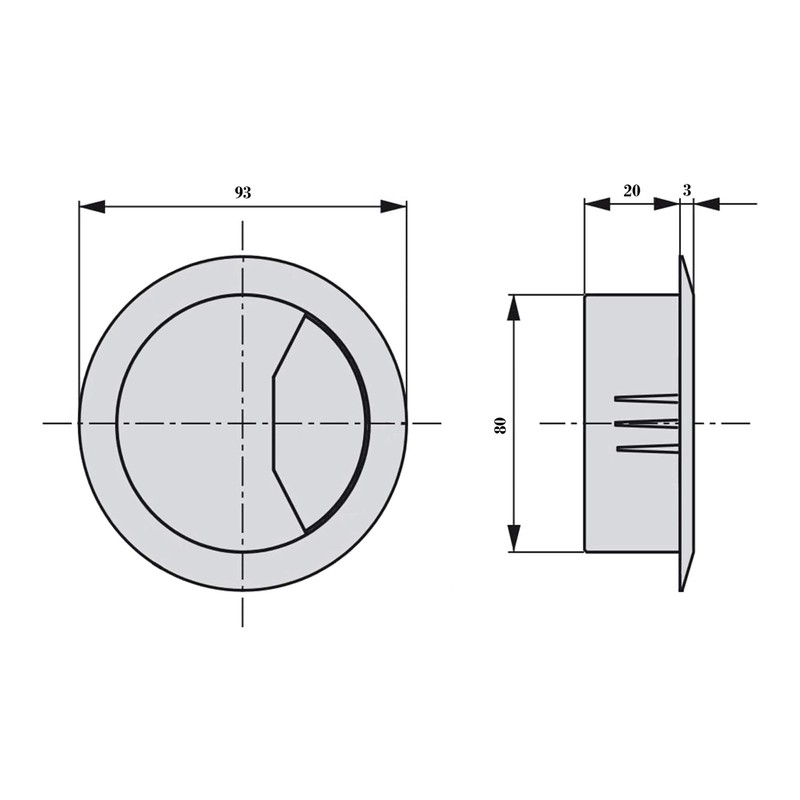 - Diameter: the table cable guide has a generous outer diameter of 93 mm and a mounting diameter of 80 mm. These dimensions provide enough space to pass various cables and wires through. The perfect solution for managing and organizing cables.