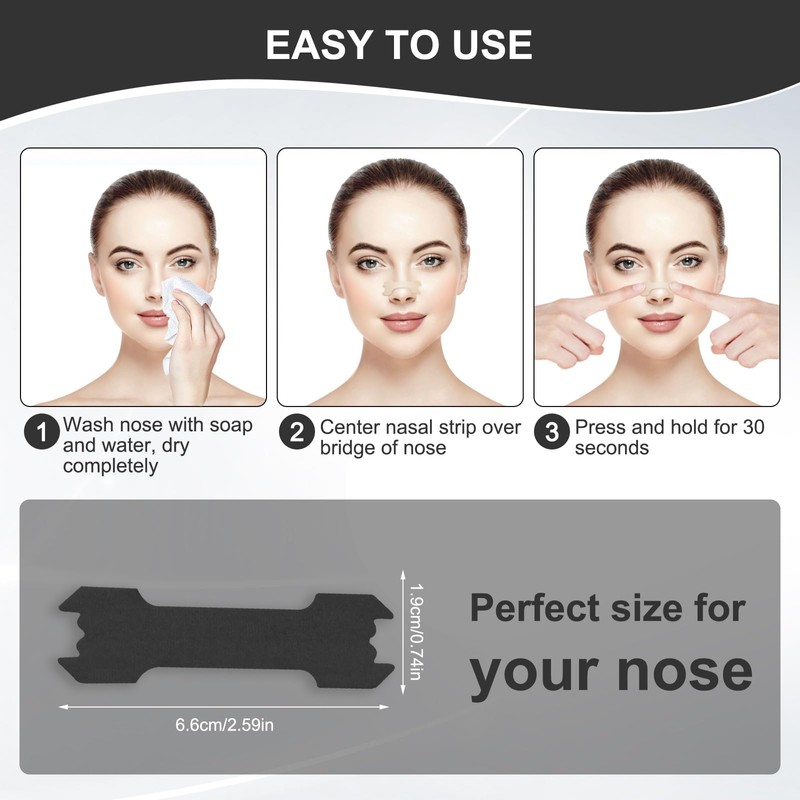 • DRUG-FREE - MQ nose strips for snoring are made of flexible, spring-like bands that effectively open up nostrils and increase airflow without any side effects. MQ nasal patches not only help improve snoring problems but also relieve nasal congestion