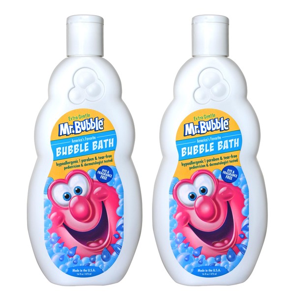 Mr. Bubble Extra Gentle Bubble Bath - Hypoallergenic, Tear Free Bubble Bath Solution Perfect for Sensitive Skin (Pack of 2 Bottles, 16 fl oz Each)