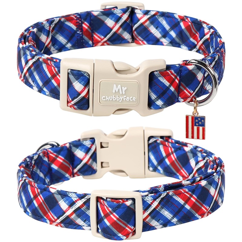MR.CHUBBYFACE Plaid Cotton Dog Collar, Soft Checkered Puppy Pet Collar with Plastic Buckle, Adjustable Premium Pet Collar for Small Medium Large Dogs