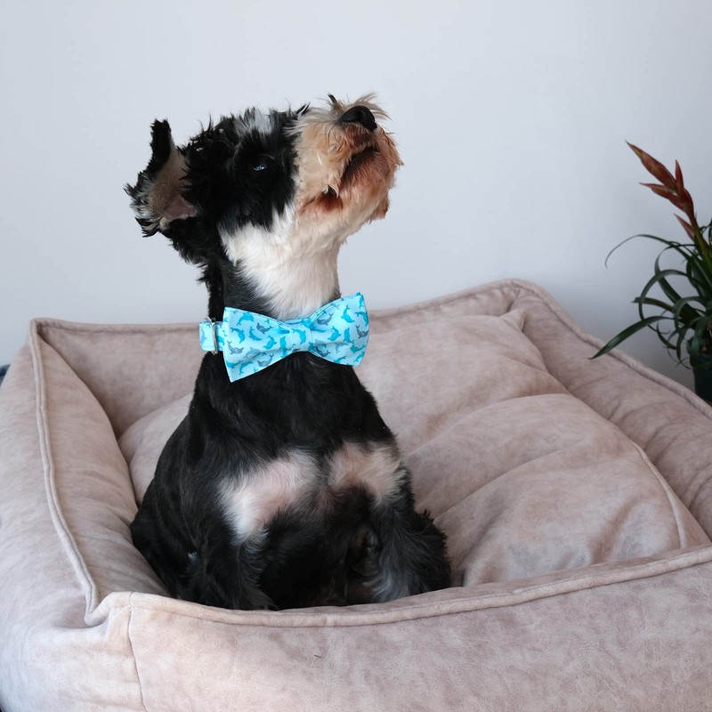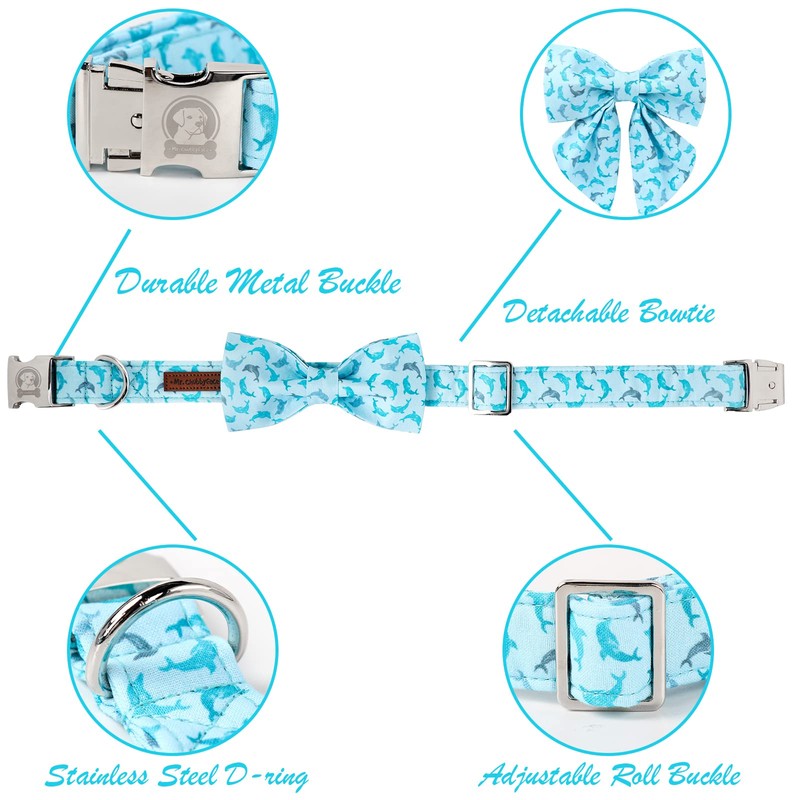 MR. CHUBBYFACE Summer Dog Collar Blue Collar with Bow Adjustable Dolphin Dog Collar Bowtie for Small Medium Large Dogs