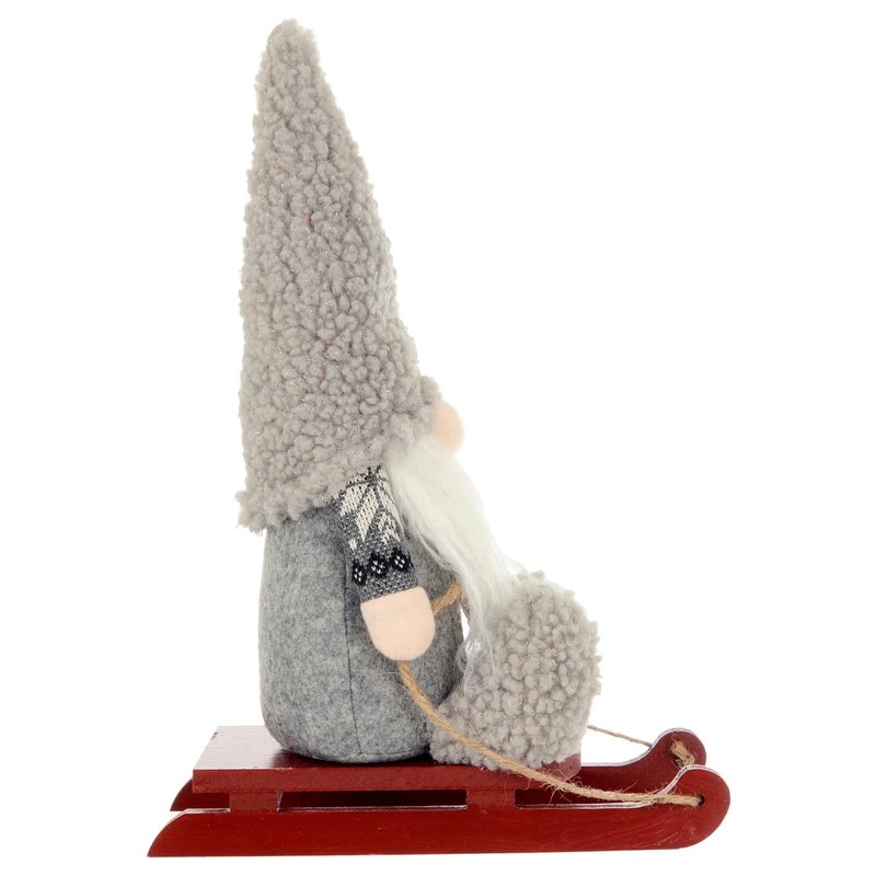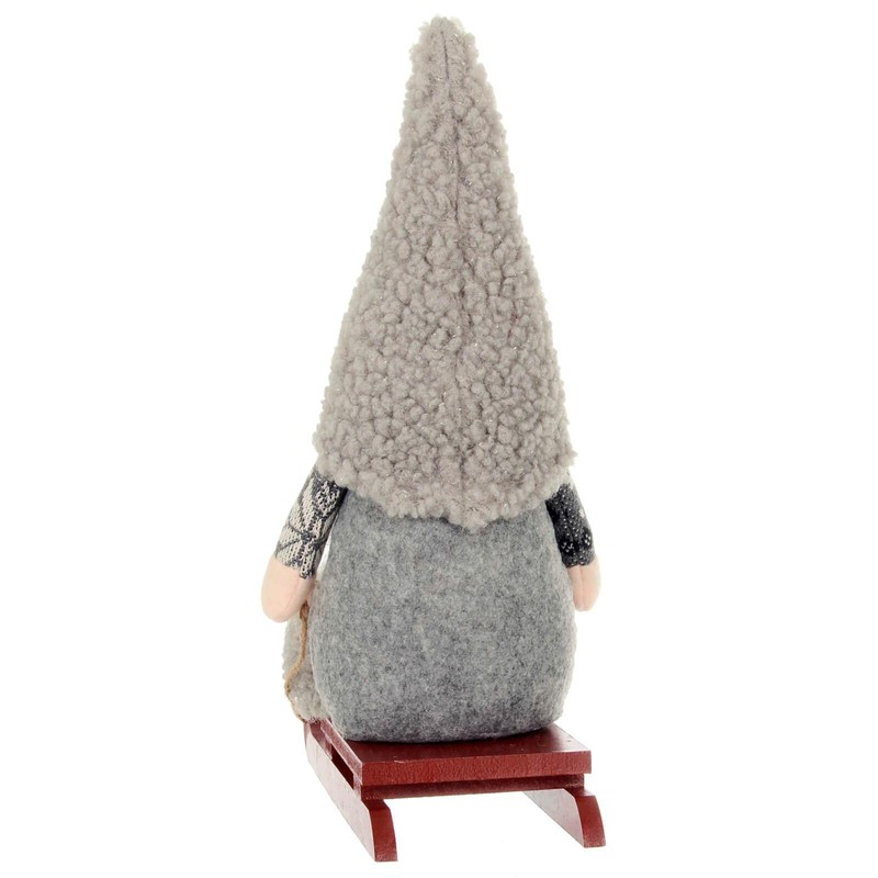 Mr Crimbo Festive Gonk Wooden Sledge Christmas Decoration Fabric Gnome 36cm - Grey